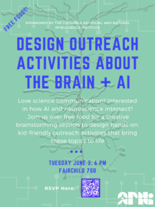 ARNI will host an informal brainstorming session on June 3rd at 6pm (Fairchild 700) focused on developing AI and neuroscience/cognitive science activities for K–12 students. The goal is to create engaging ways to help young learners better understand the brain and artificial intelligence. Trainees are encouraged to attend—if you’re interested in making an impact on youth education, this is a great opportunity to get involved. Join if you are free!